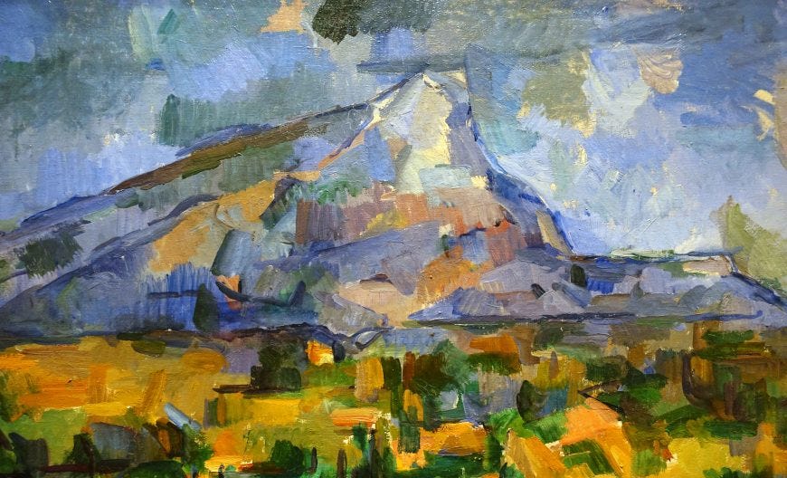 Cezanne squiggled until his 40s, but started to squiggle less at 67. He was revisiting past work again and again till he got it right. He kept painting the mountain I featured as the cover image, the Mont St. Victoire, repetitively till his ideas began to clarify, and the amplitude of the squiggles went down.